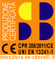 L'esposizione del Logo attesta la produzione controllata da sistema certificato secondo CPR 305/2011/CE e la Norma di prodotto UNI EN 13241-1. Garantisce i vostri clienti del controllo necessario sulla vostra produzione per la produzione di cancelli.
